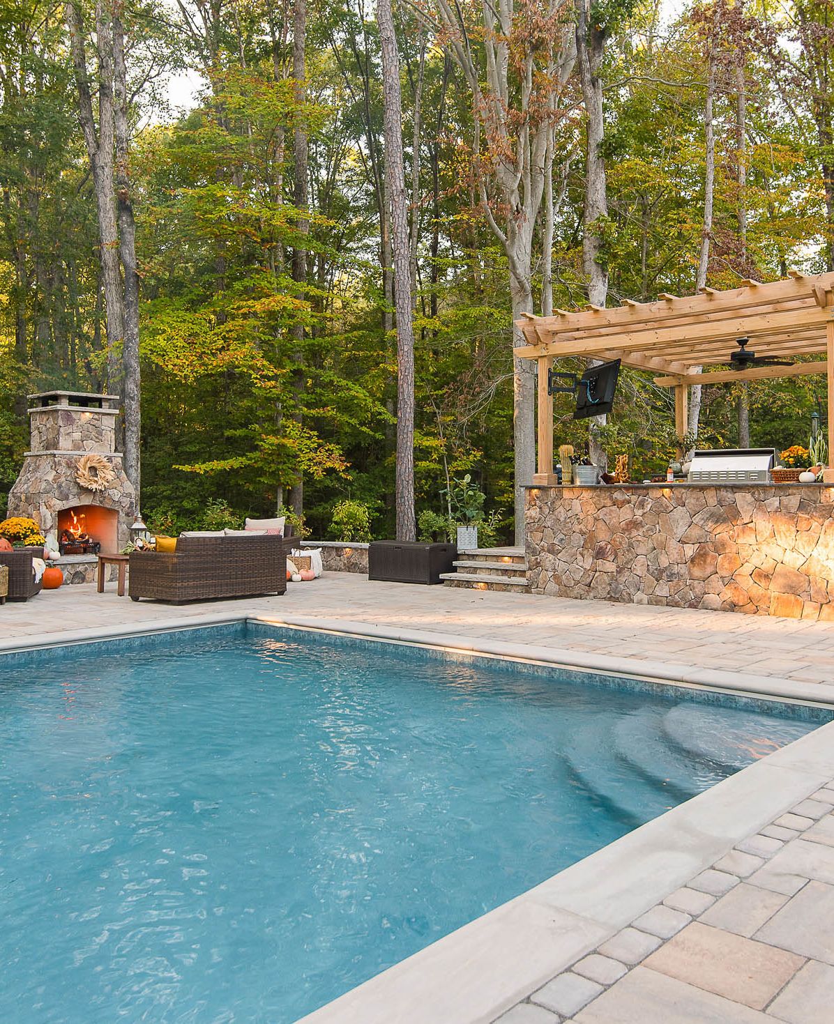 Dollar for dollar, we believe that nothing will add more value to your poolscape than landscaping and lighting. Landscaping will increase the tranquility of your poolscape and put you in touch with nature. Low voltage lighting will provide a stunning ambiance and allow you to enjoy your pool better after the sun goes down.
