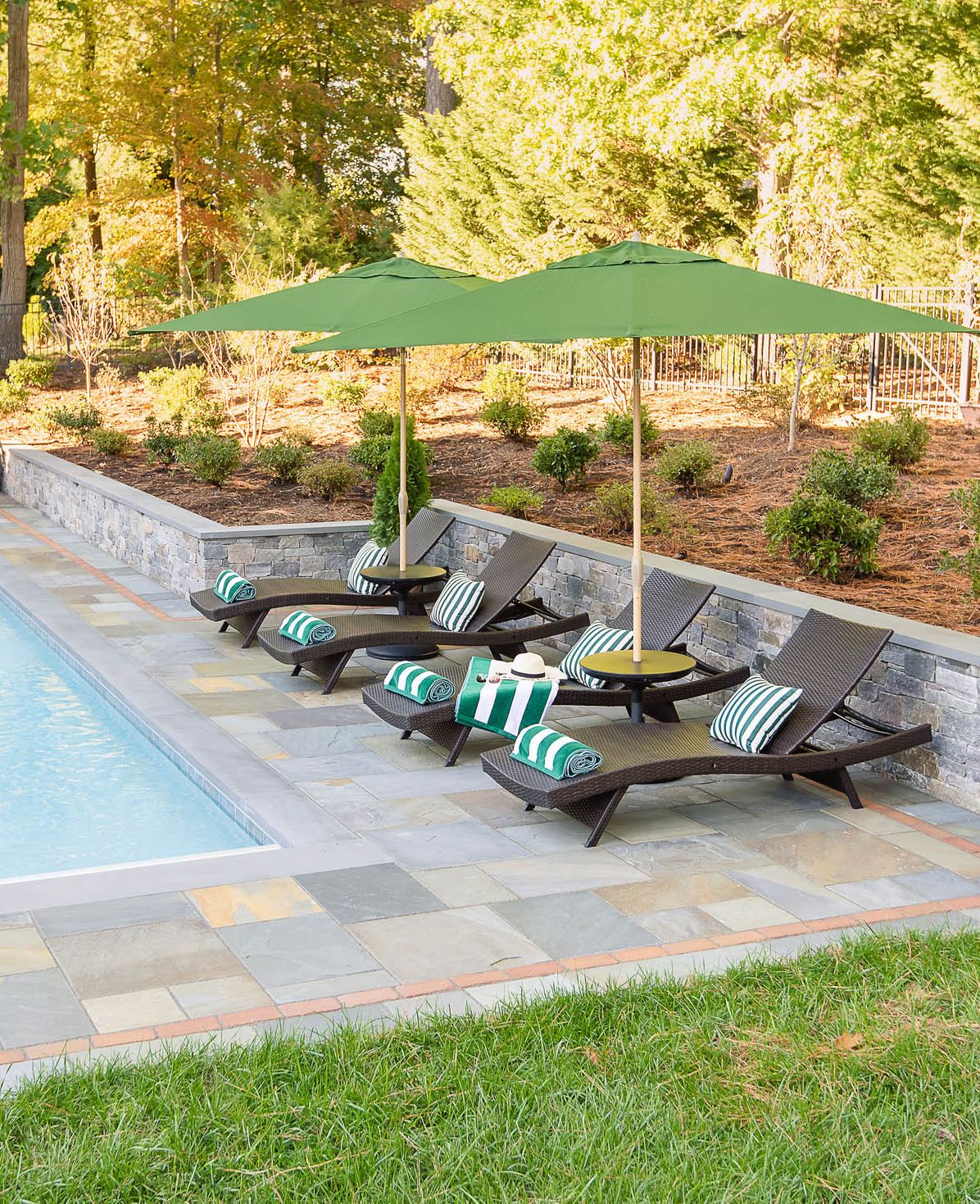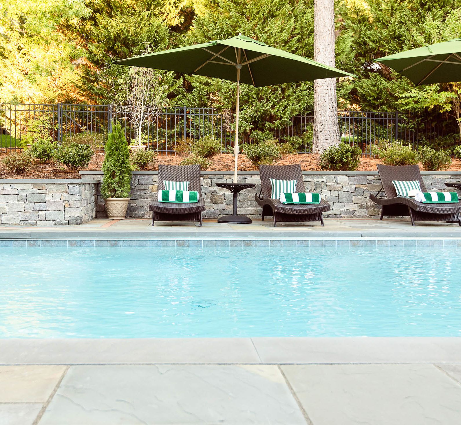 Too often furniture is an afterthought when designing outdoor spaces. This frequently leads to designers creating large, open poolscapes with a lot of extra decking. Though open space does offer versatility, it is often a waste of money. For this reason, we recommend that you think through your furniture needs early in the process and design to meet those needs specifically.