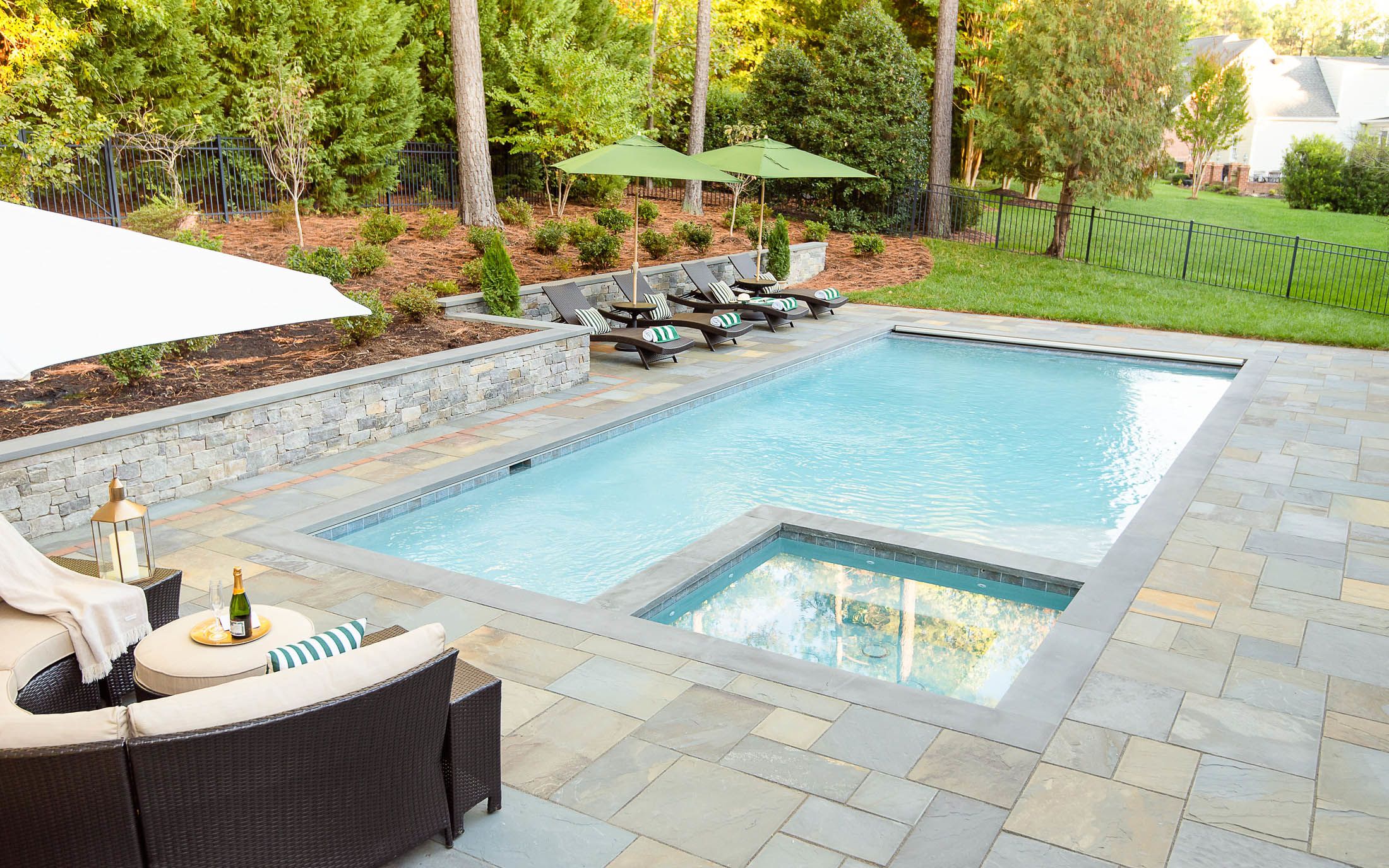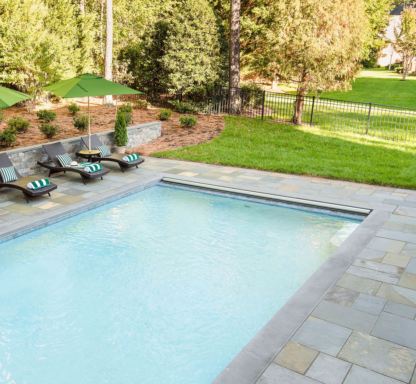 To meet the building code in Virginia, your pool must be enclosed by a fence or an automatic cover. If you're trying to keep your project on budget, it's worth pricing both to see which is more cost-effective. Though automatic covers are an expensive feature, they often cost less than enclosing an entire backyard with aluminum, premium wood, and PVC fences.