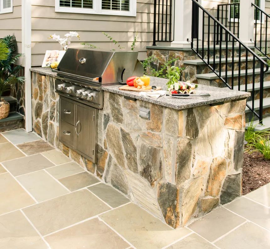 An Outdoor Kitchen (even a simple grill island) is typically the most expensive feature you can add to a patio. The reason for this is the combination of detailed masonry work, expensive countertops, weather-resistant stainless steel appliances, and permitted utility requirements. Because these costs add up quickly, outdoor kitchens and grill islands are often scaled back, designed for a phase 2 implementation, or sometimes completely removed from the project.