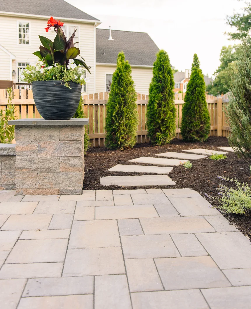 One of the easiest ways to cut costs from your patio project is to use stepping stones for your walkways. This simple change will decrease your walkway cost by at least half!