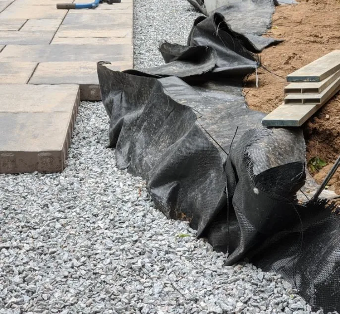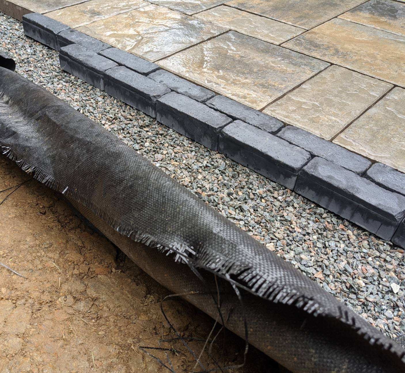 Installing separation fabric creates a barrier between the soil and gravel foundation. Without separation fabric, soil migrates into the gravel foundation, preventing proper drainage and causing significant shifting.