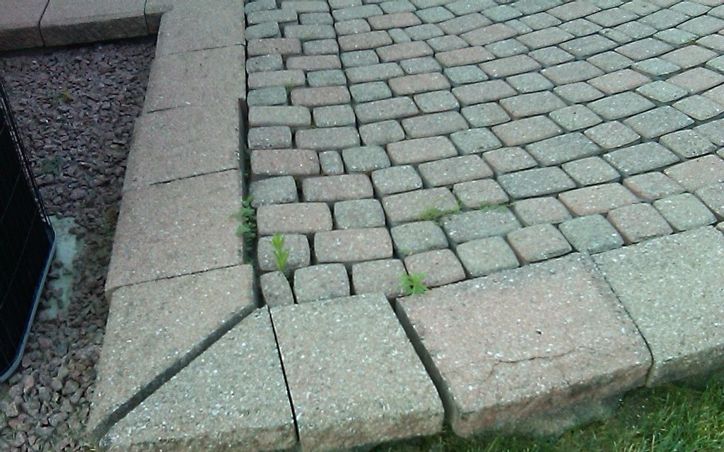 Failure to install edge restraint properly will cause the patio’s edge to separate and collapse (as seen in this photo).