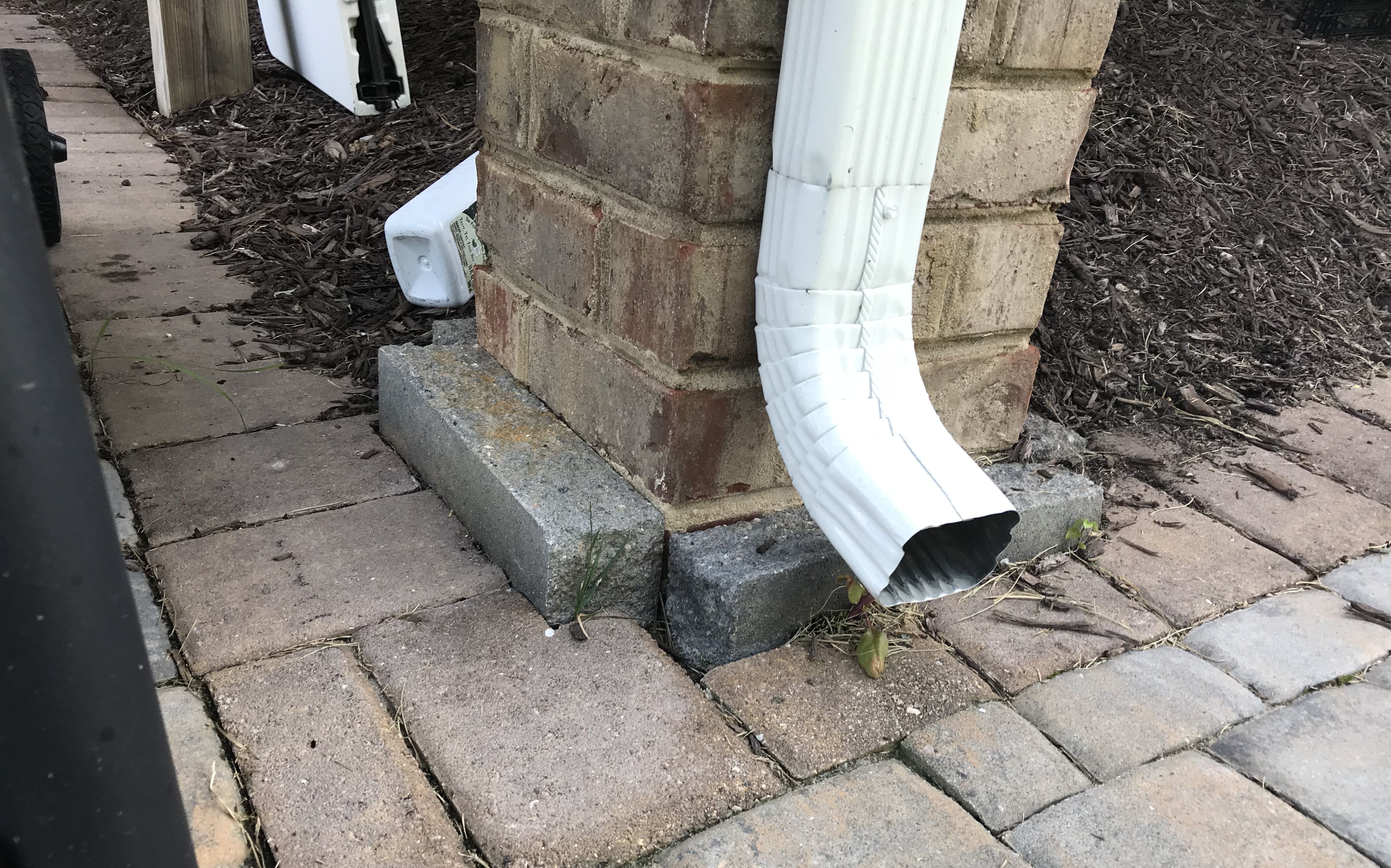 Whether it's downspouts or water rolling across a sloped property, excess runoff should not be allowed to flow onto hardscape structures. Allowing water to pour onto patios will wash out joint grout, creating structural instability and weed growth.