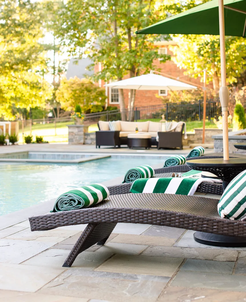 Concrete pavers offer unparalleled design versatility, available in numerous sizes, colors, and textures. They’re an excellent choice for creating borders or inlays that add contrast and character to your pool deck.