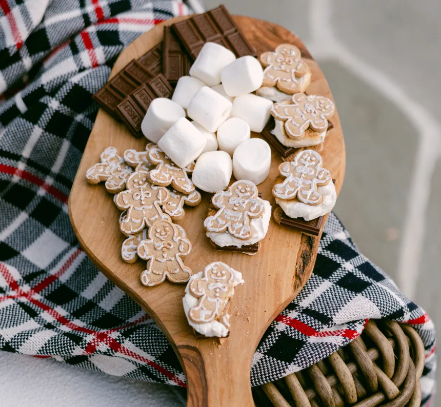 For the holidays, consider stepping up your S'more's game. Instead of graham crackers, consider using extra Christmas cookies or gingerbread. For a peppermint twist, sprinkle your s'mores with a crushed candy cane or swap out the traditional chocolate bar with peppermint bark.