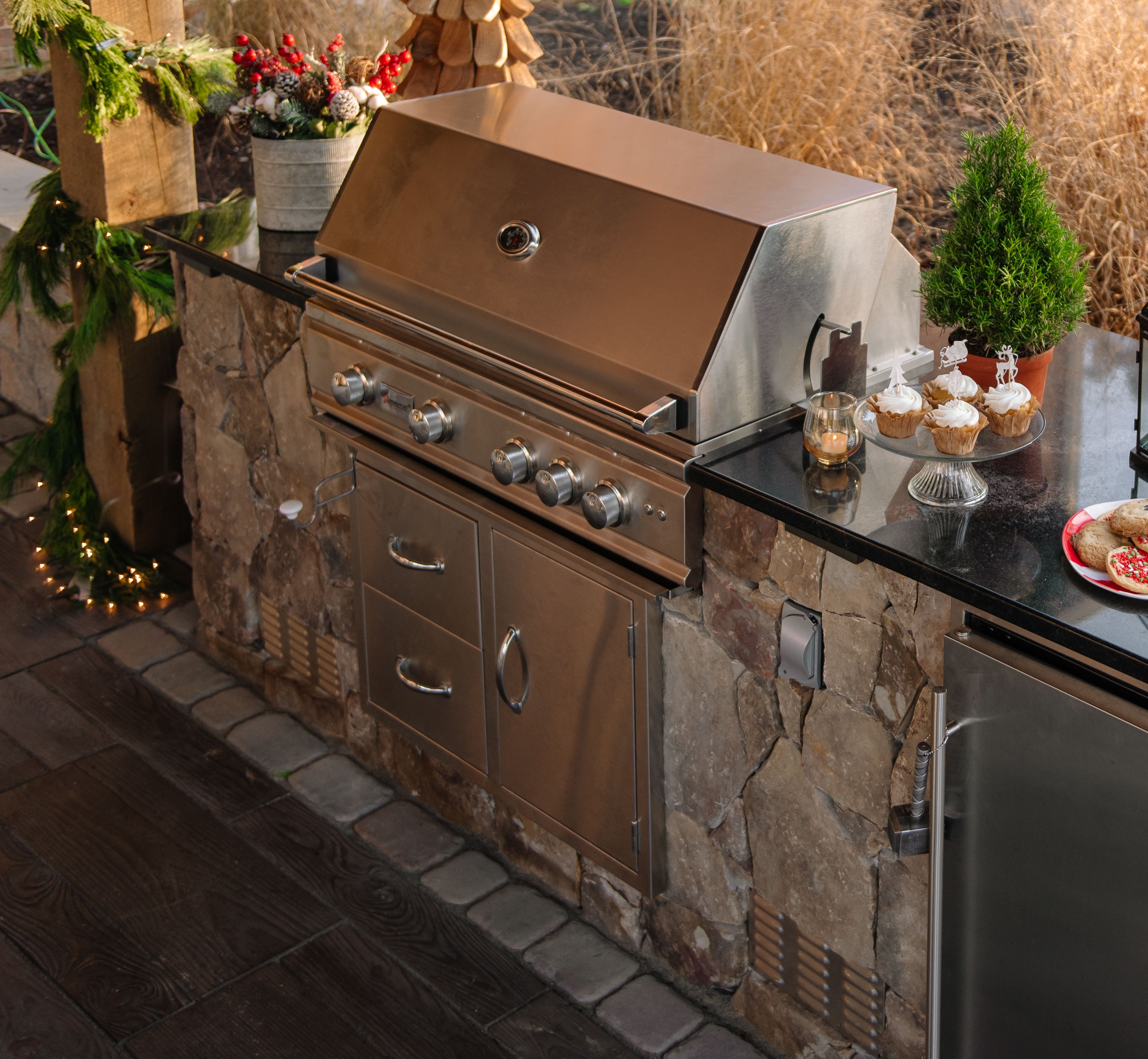 If you're entertaining, it's important to keep the food and seasonal drinks warm. To do this in your outdoor space, simply keep your grill on low and use it as you would an oven.