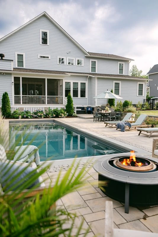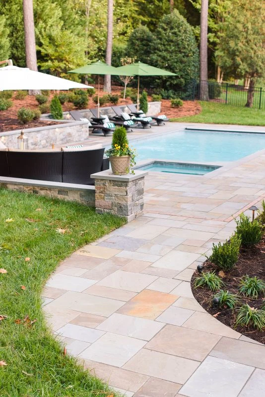 custom built luxury pool with natural stone coping
