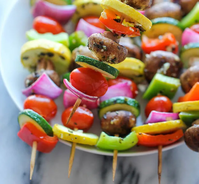 Making kebabs? For evenly cooked skewers, pair softer vegetables together, such as tomatoes and mushrooms, and harder vegetables together, such as onions and bell peppers.