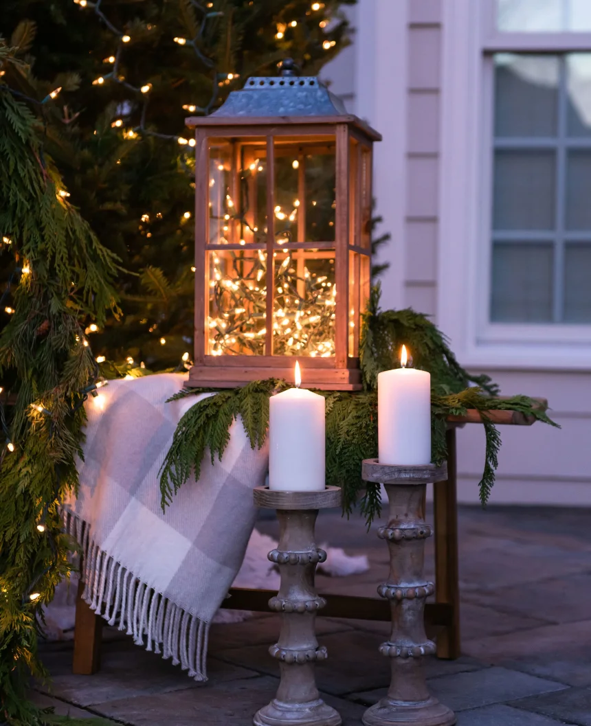 Lanterns have been a staple of home decor for years. If it isn't already, consider outfitting your patio, deck, or porch with lanterns. To give them a holiday touch, fill your lanterns with ornaments, candles, lights, greenery, pinecones, or your favorite unique combination.