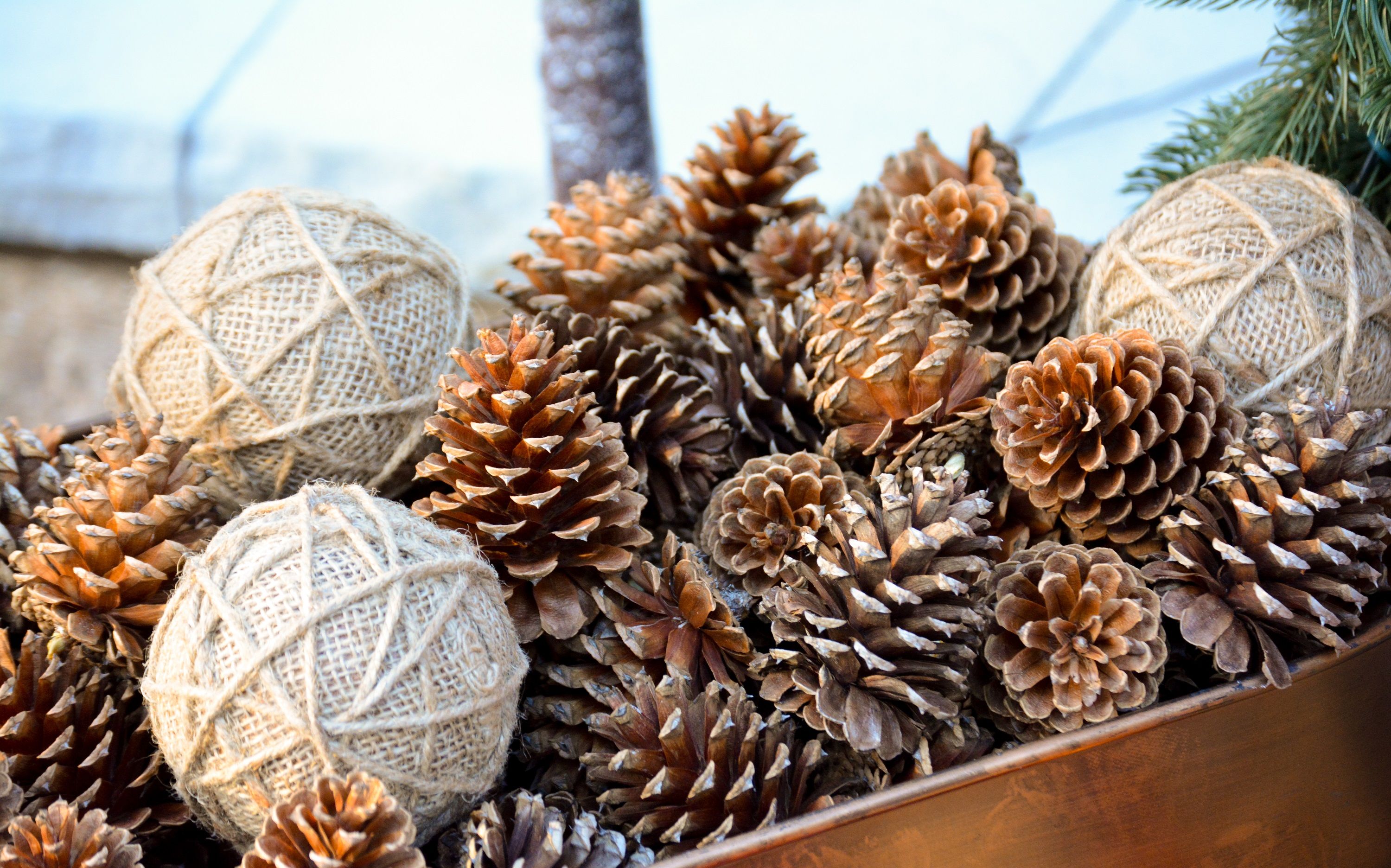 Your landscape is likely full of plants that are perfect for creating and accenting your holiday decor. For greenery, consider clipping your pines, arborvitae, cypress, juniper, hollies, boxwood, and cryptomeria. If you're looking for berries, consider hollies, nandina, juniper (unique blue), pyracantha, and beautyberry. Clipping stems from a redtwig dogwood or coral bark maple can provide bright pops of color. And, of course, don't forget to collect your pinecones (pictured) and gumballs.