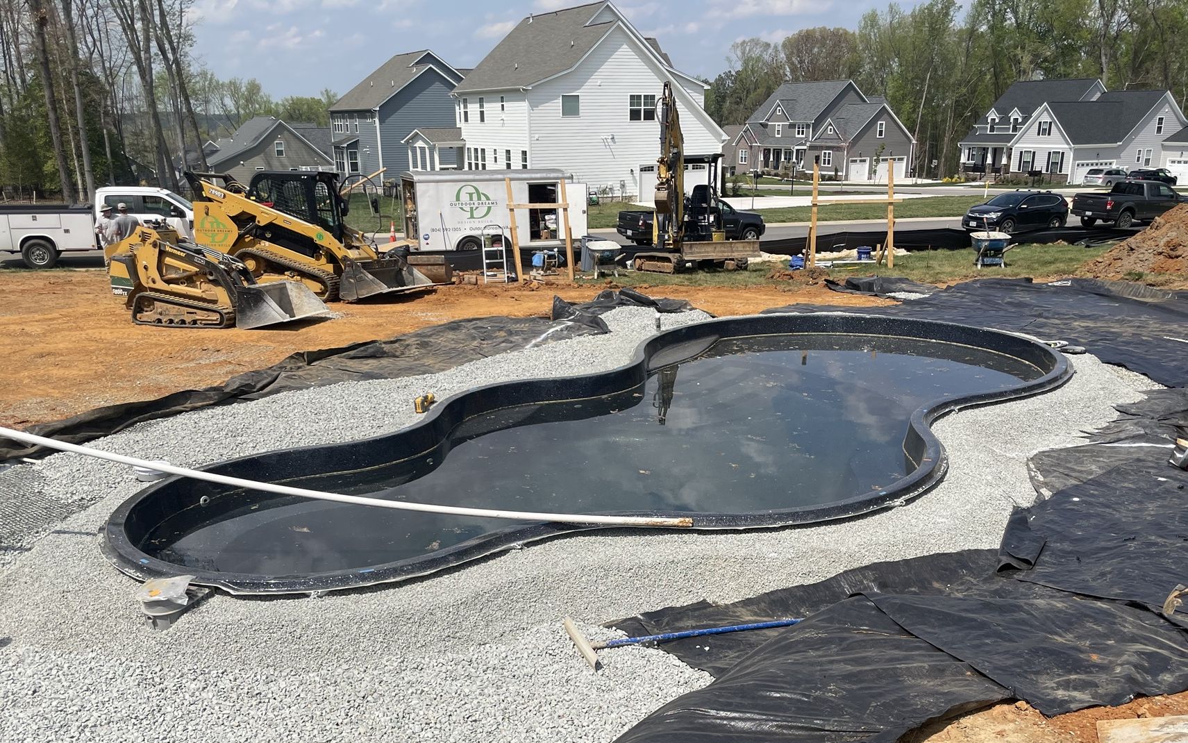 This pool was filled slowly with a hose and backfilled equally with clean gravel to ensure no bulging or cave ins of the fiberglass shell.