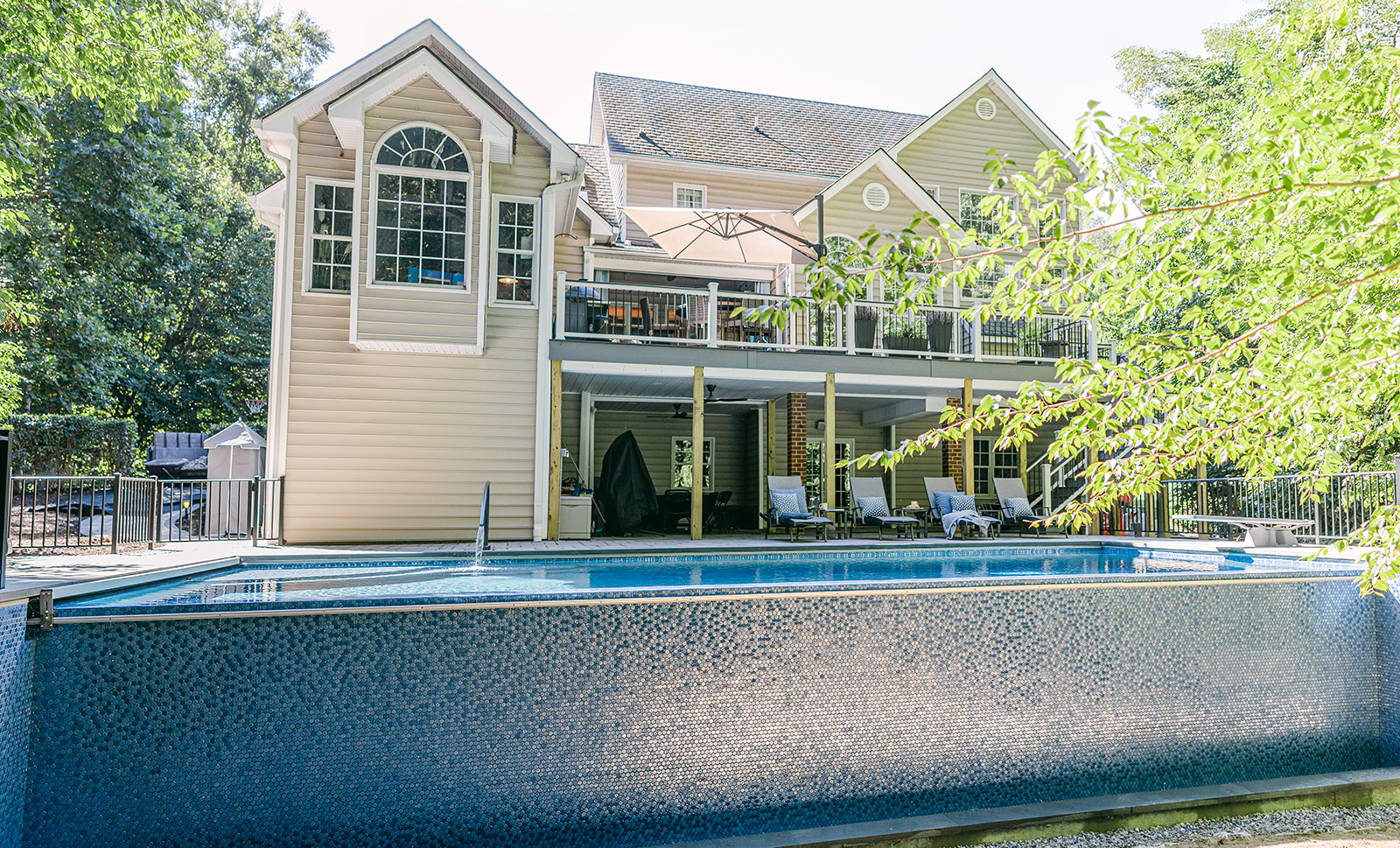 This breathtaking backyard transformation in Chesterfield features a custom gunite infinity edge pool that blends high-end engineering with timeless design. Every element of the project was meticulously planned to balance visual beauty, technical precision, and everyday usability.
