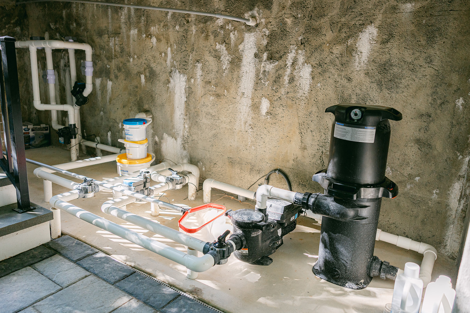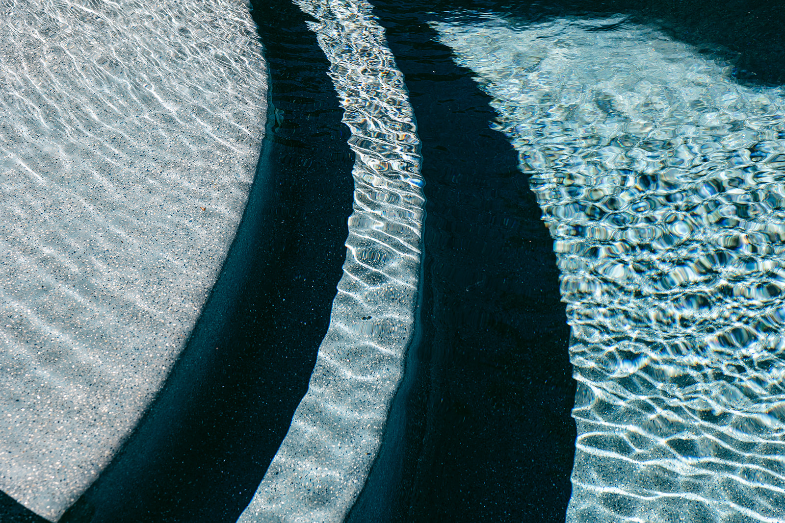 One of the project’s most innovative details lies beneath the surface: both sides of the pool deck were framed, rebarred, and shot in gunite together with the pool shell, allowing the creation of an integrated equipment cubby (or “equipment cave,” as our team likes to call it). This clever nook conceals all the pool equipment while keeping it close to the pool for maximum efficiency, accessibility, and performance. It’s the kind of behind-the-scenes detail that makes a big difference in how the space functions long-term.