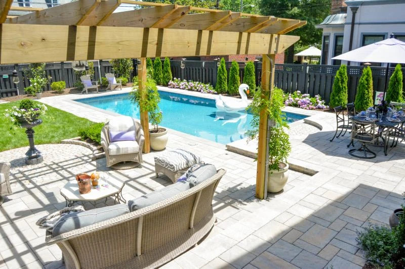This outdoor space was designed specifically for an active family. Our clients are always on the go and wanted to create a special place for their family to slow down and relax. Instead of investing in a vacation home that might get limited use, this client invested in creating a backyard vacation spot that could be used every day.