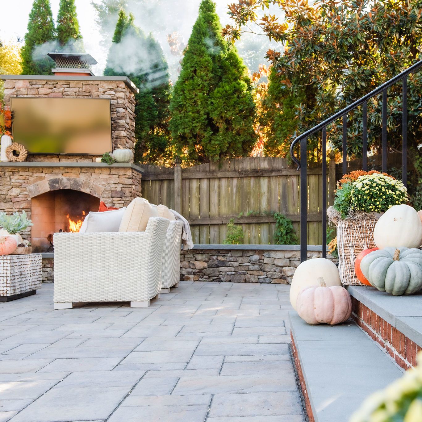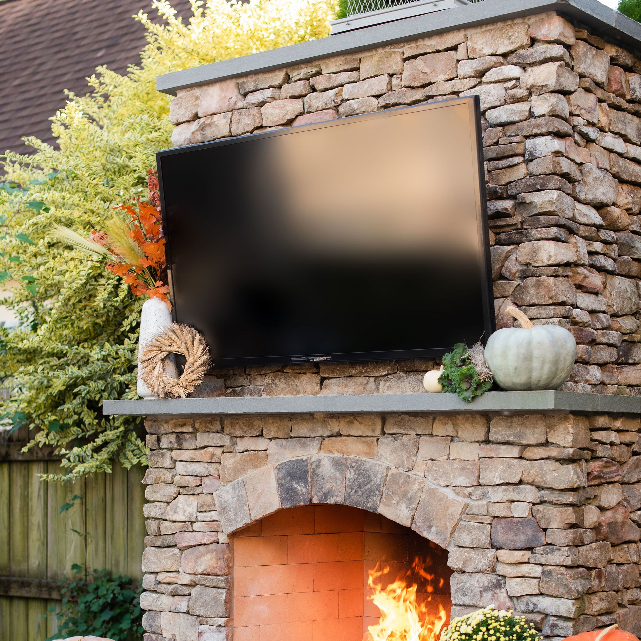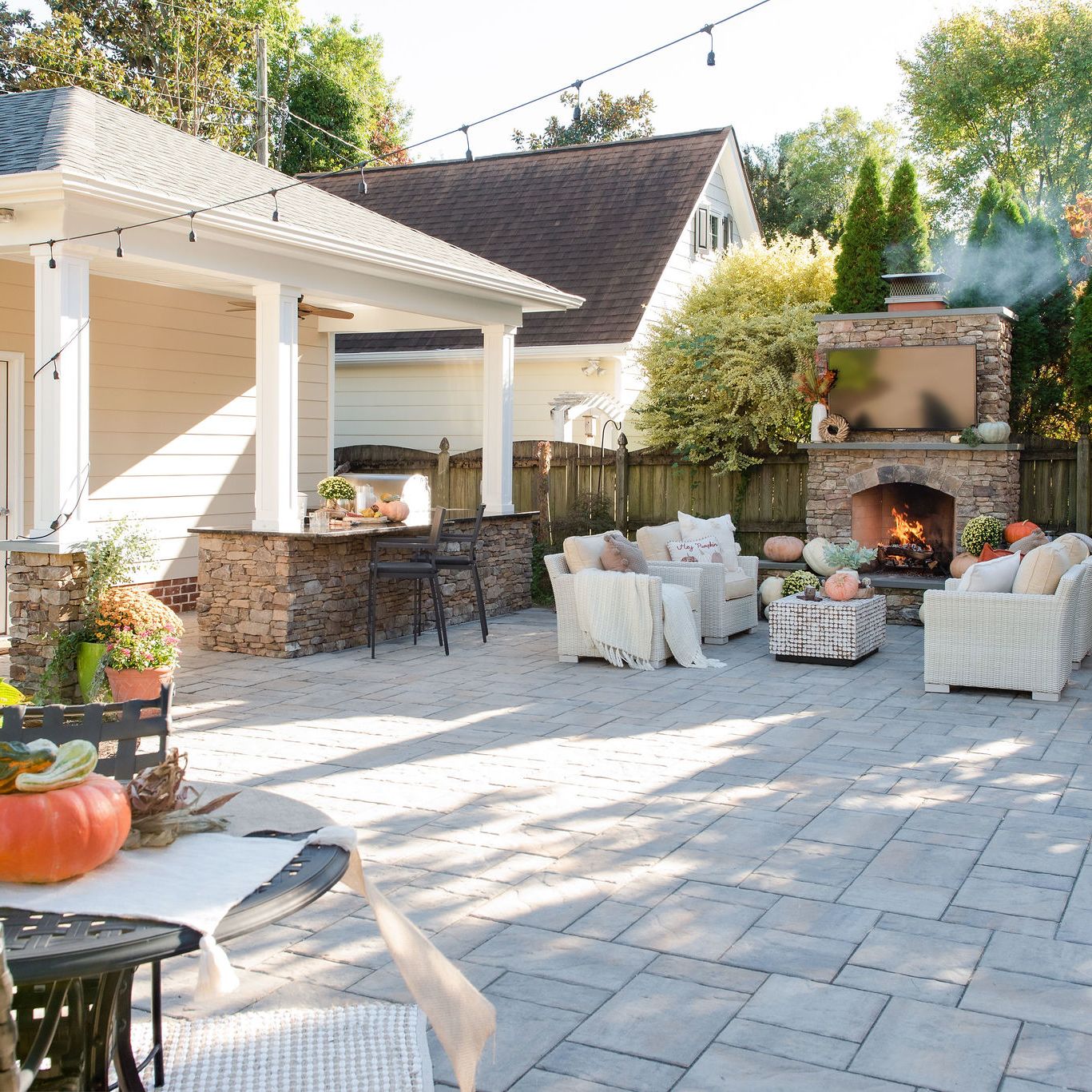 This client contacted Outdoor Dreams to transform his backyard into a space where he could entertain friends and enjoy watching sporting events. For this project we demolished an old garage and designed this space that includes a paver patio, outdoor fireplace, sitting walls, landscaping, and a custom garage with outdoor kitchen and bar area.