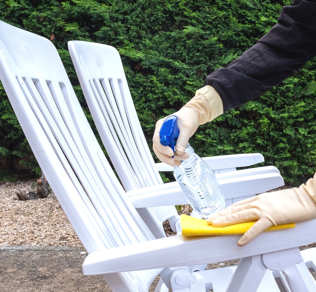 Knowing what your furniture is made of will help you determine what you’ll need to do to best get the cleaning accomplished. For most everything, a simple bucket of warm water, a little liquid dish soap, and a soft sponge or brush work great.