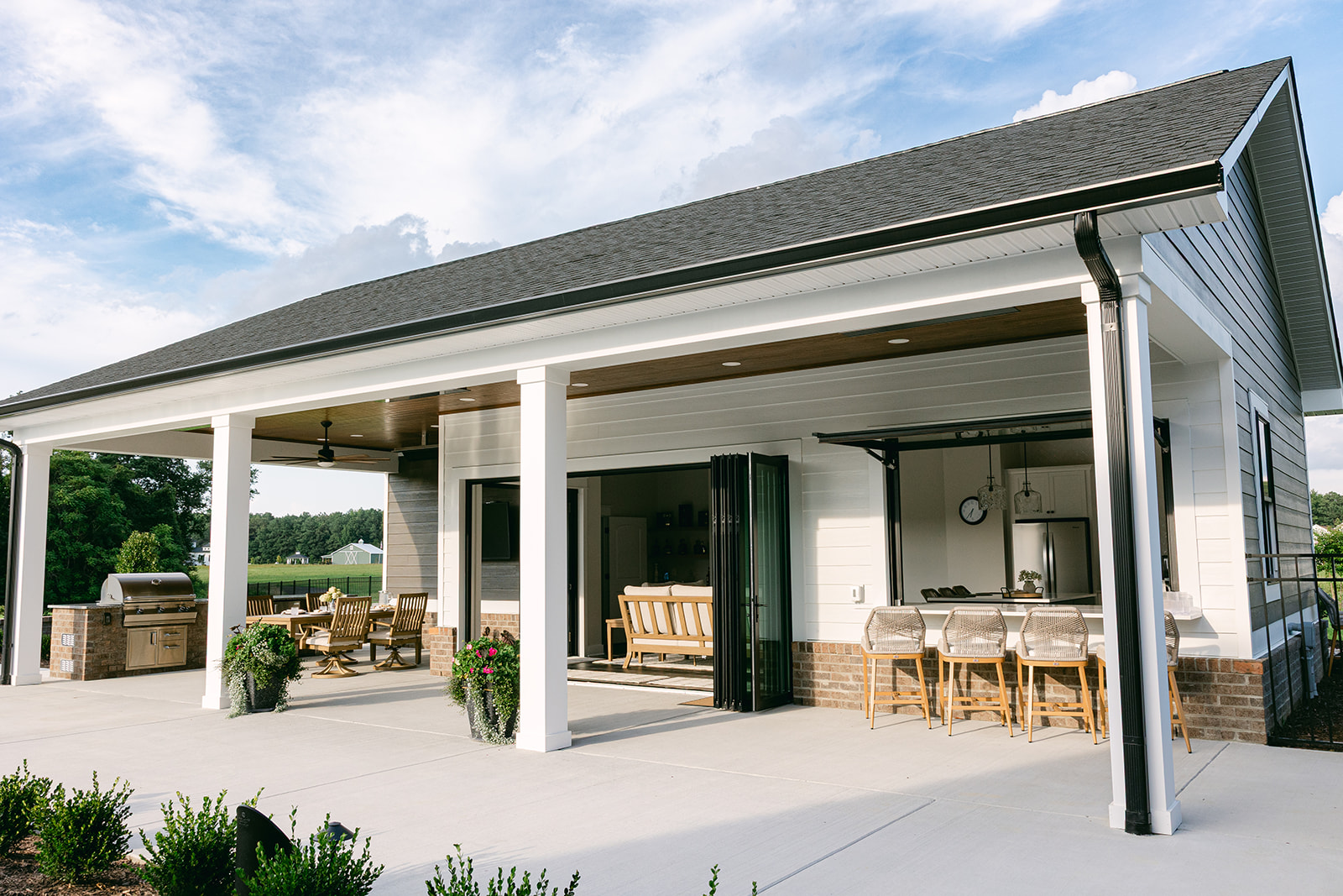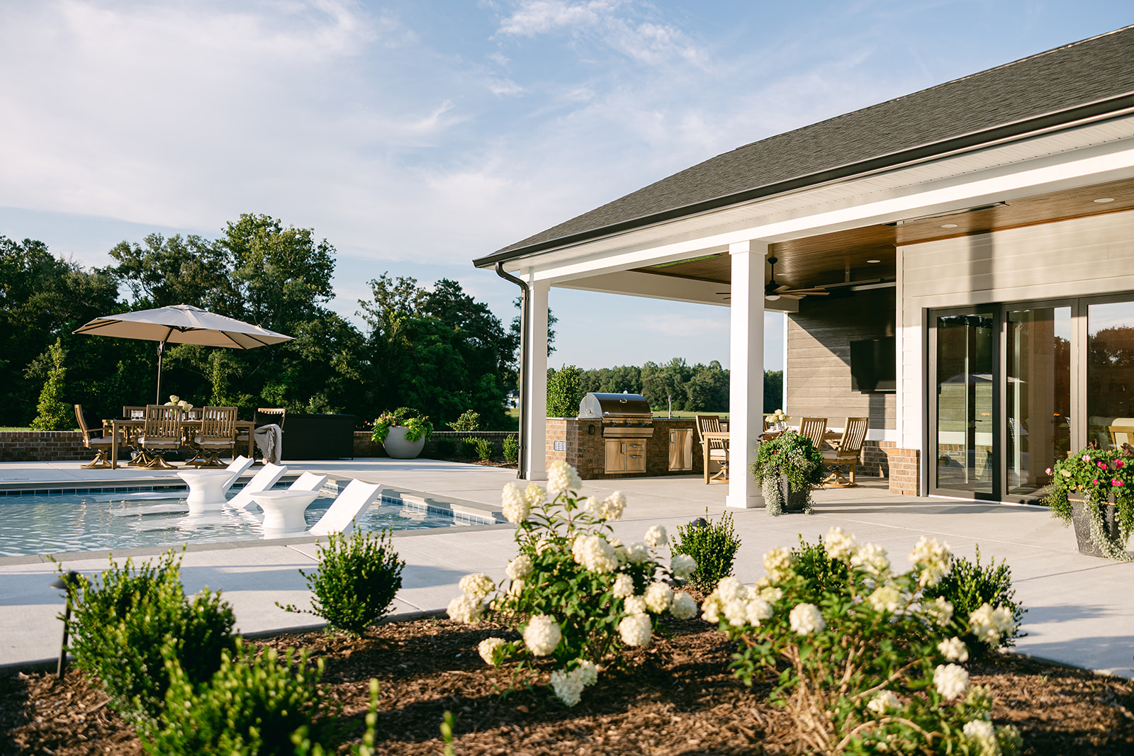 When our Mechanicsville clients envisioned their dream backyard, they didn’t want a simple structure by the pool, they wanted a destination. With 11 acres of country land, grown children, grandchildren, and a wide circle of friends, their vision centered on creating a gathering space for every season, from summer evenings under the stars to Thanksgiving dinners and Christmas celebrations.