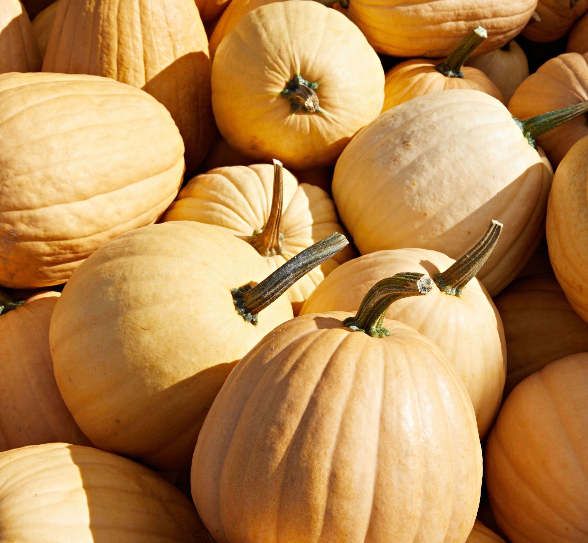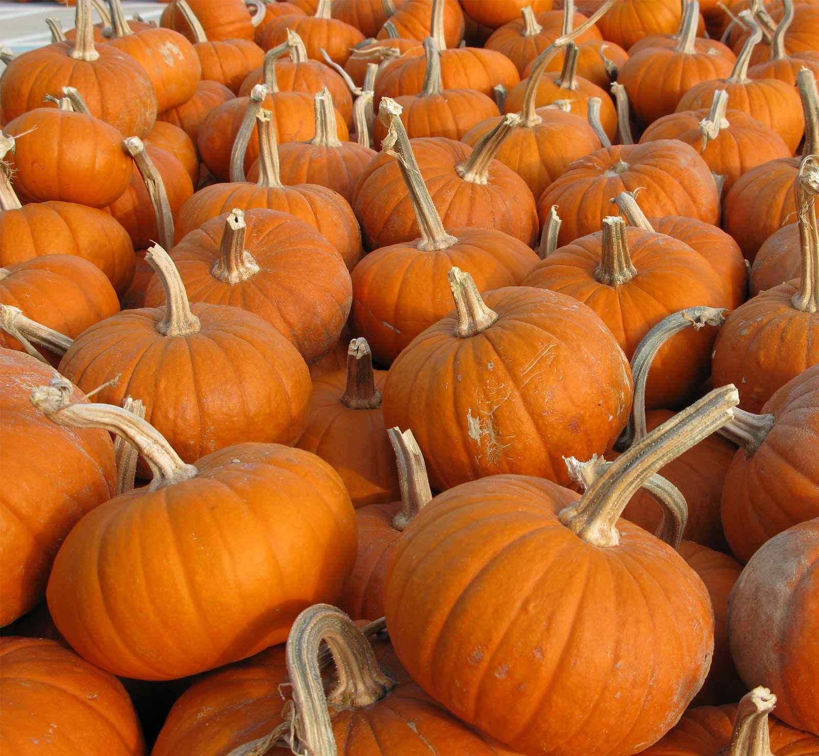 JACK O’ LANTERN: With this name, you know it must be perfect for carving! Jack O’ Lantern pumpkins typically weigh around 20 pounds, and they have a solid rind with an oval or roundish shape. Although not often considered a pie pumpkin, it is edible and can be roasted for use in pies, muffins, and soups.