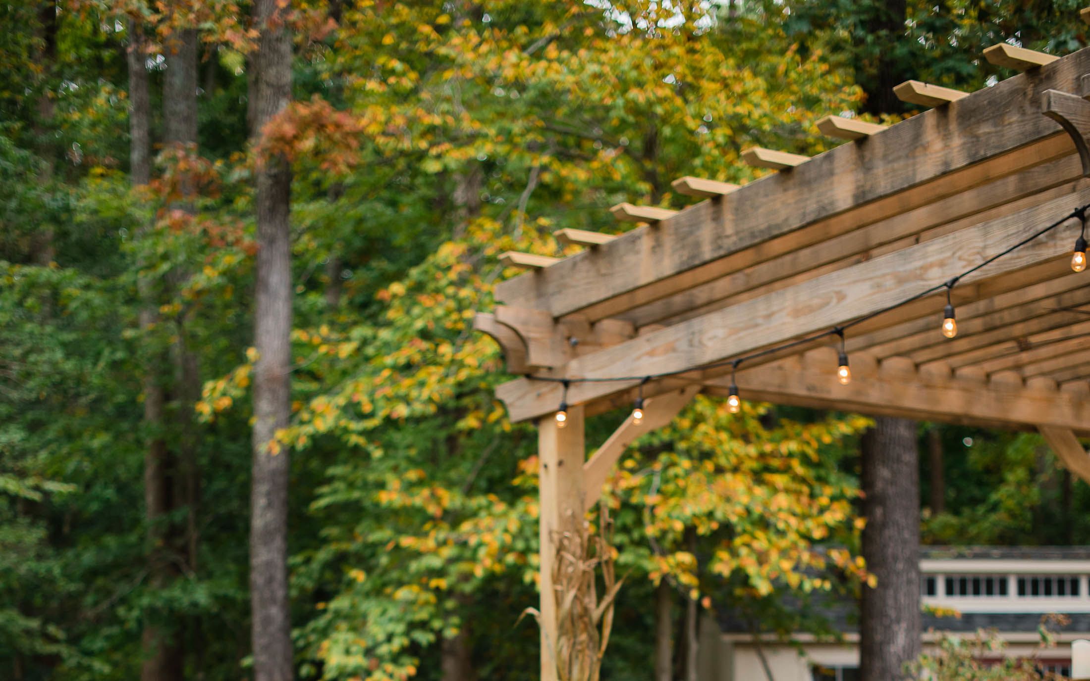This versatile patio space features a pergola, steps, outdoor fireplace, and rustic landscape. This space is also staged with over 10 different varieties of pumpkins and gourds. Can you identify them all? Click to see more photos