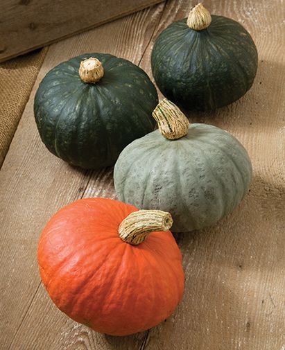 Kabocha is a Japanese winter squash that is also referred to as a Japanese Pumpkin. Whether it's the "Green," "Blue Kuri," or "Orange" variety, you cannot go wrong with Kabocha squash on your front porch as decor or your dinner table as a meal. They can be stored for months, so feel free to use them as decor during the fall season and add them to your menu in the winter. The skin can be hard to crack, but the sweet-tasting flesh is worth the effort!