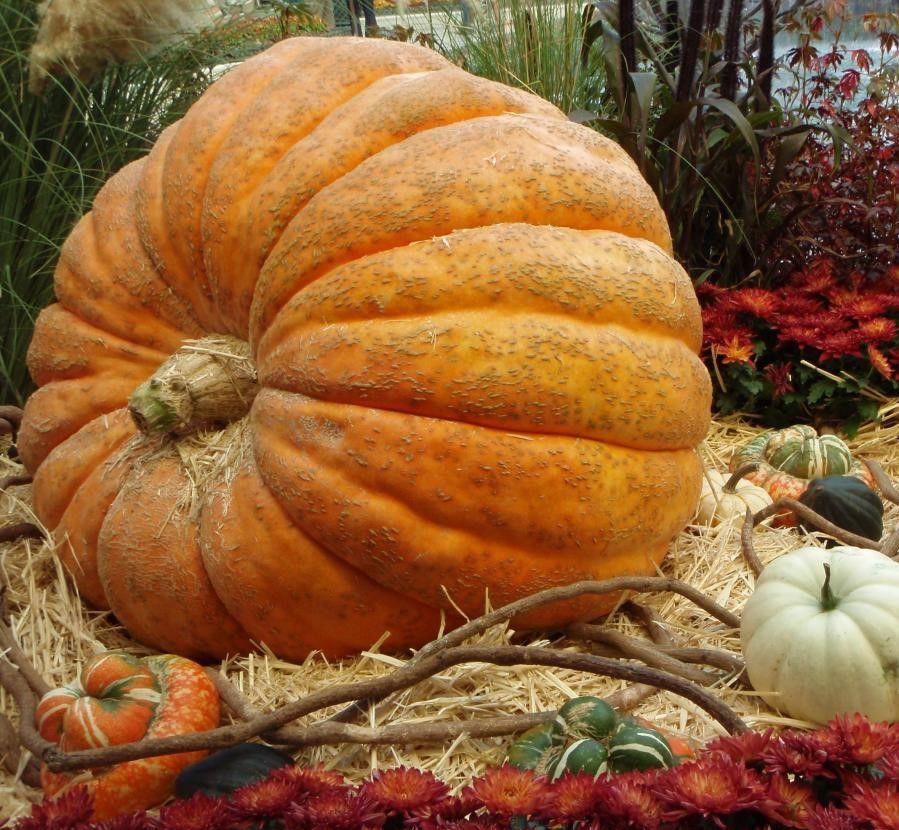 This is the big daddy of pumpkins. It grows up to 200 pounds with a spread of at least 12 feet, so you are going to need an extra-large garden to contain it. These pumpkins are grown primarily for show and carving competitions, as they are seedy and not very tasty.