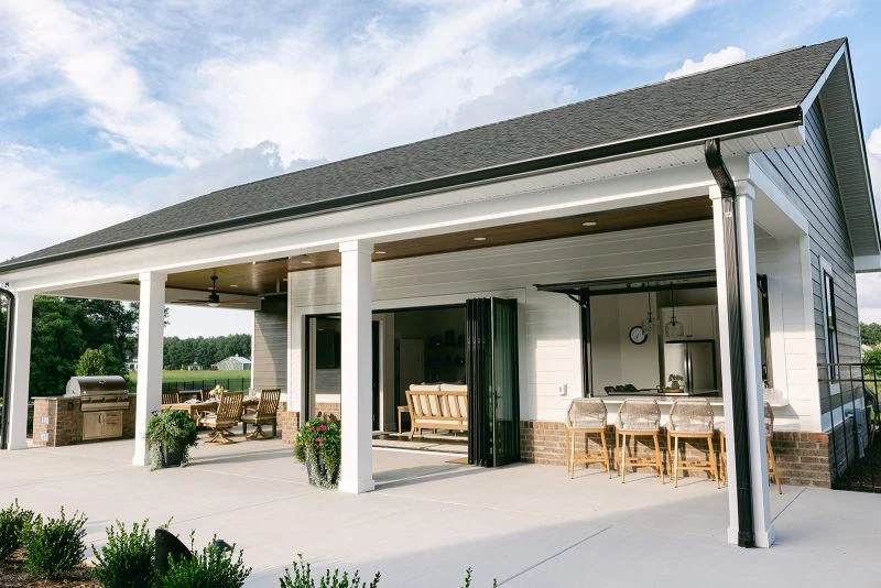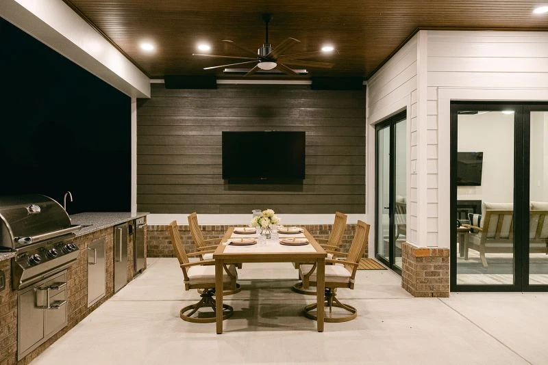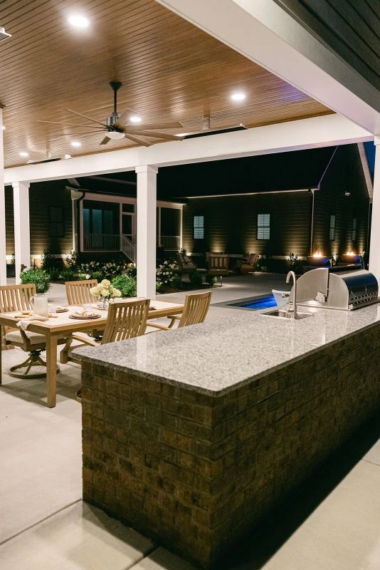 ELECTRICAL & AUTOMATION This stunning space was further elevated by Dwell Home Services, Outdoor Dreams' sister company. Led by master electrician Casey Milliron, Dwell handled all pool and pool house electrical work, along with the outdoor heating, audio, televisions, and complete automation for both the pool and pool house.